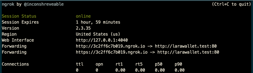 - Visit the public URL on our browser: http://3c2ff6c7b019.ngrok.io