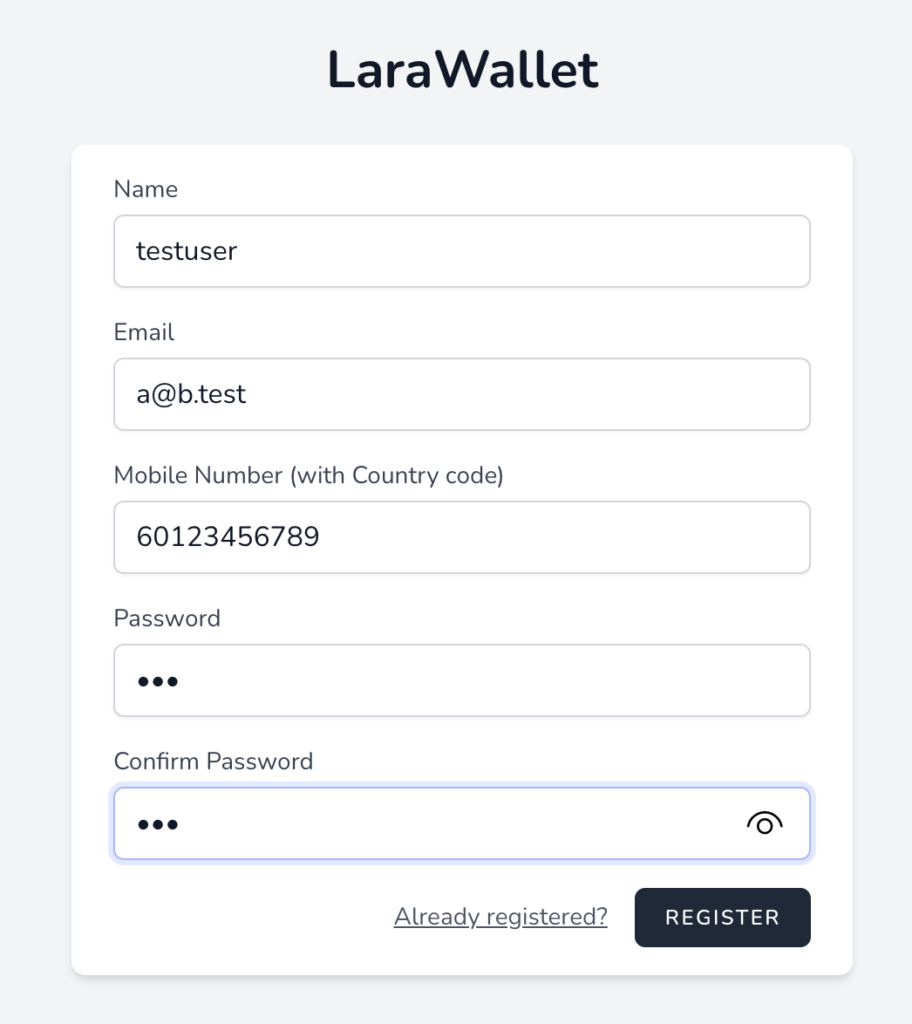Finally, we’re ready to test the new SMS OTP feature for LaraWallet